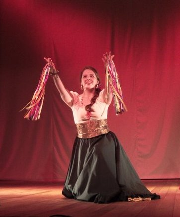 Através da dança cigana podemos evocar forças místicas. Os movimentos lembram a fluidez dos ventos, a sinuosidade das águas, o oscilar das chamas e o vigor da terra. Tem seu ritmo regido por pandeiros, palmas e movimentos de saias, numa vibração única por onde perpassa a energia das forças místicas e da natureza.”